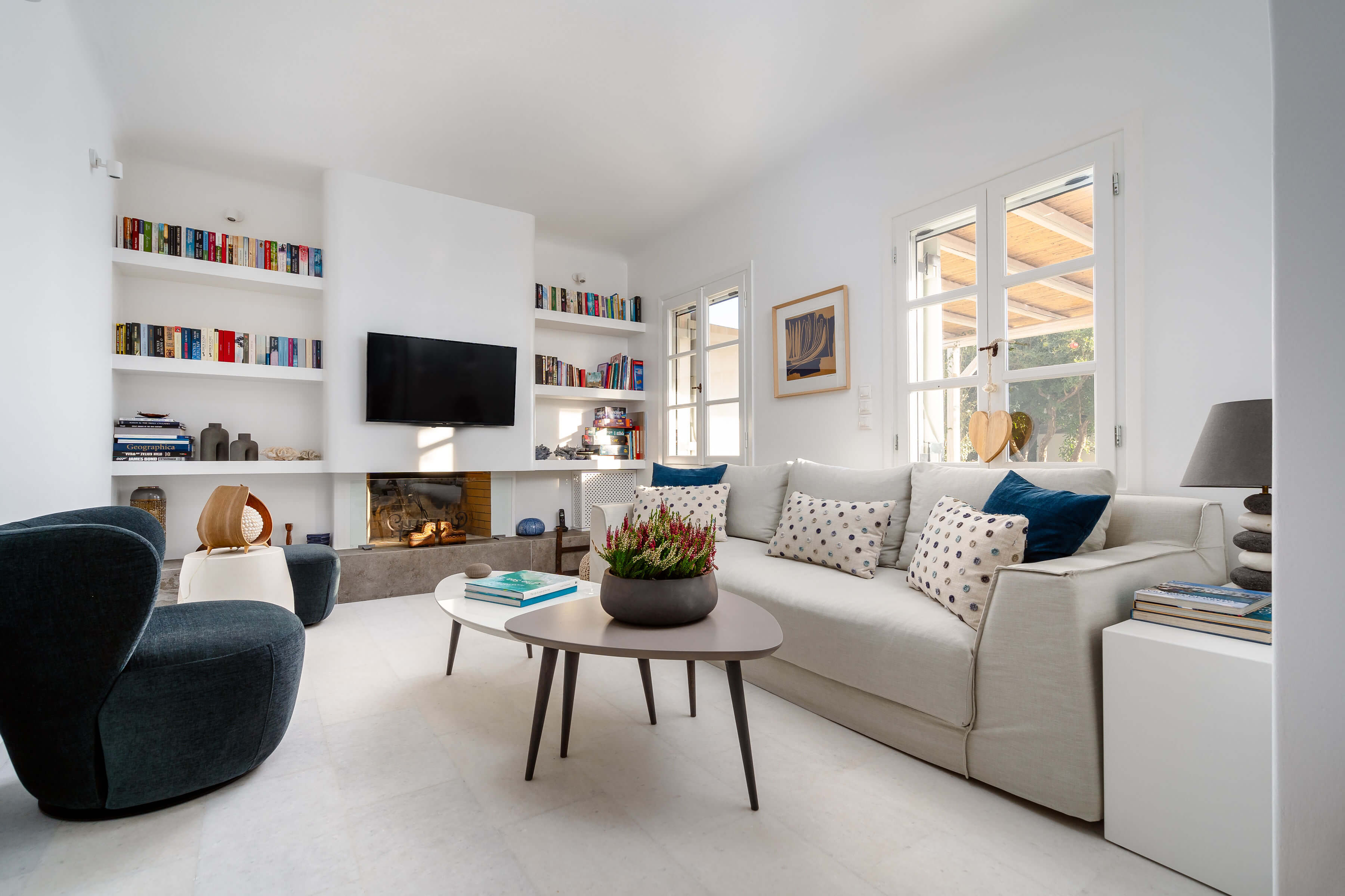 Villa Mayia stands stunning, perched gracefully on the edge of a cliff, overlooking the sea. The exterior is characterized by clean lines that invite the breathtaking views of the sea into every room. The use of natural materials harmonizes beautifully with the Cycladic environment. At the heart of the outdoor space lies a magnificent swimming pool complete with comfortable sun loungers and a well-equipped barbecue area. Each of the five bedrooms with ensuite bathrooms is a haven of comfort and style.
